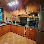 Guests can dine at an outdoor dining area equipped with coffee and tea makers. The kitchen also offers a microwave oven, a refrigerator, and kitchenware. The Jerutki villa is also a 36-minute drive from Szczytno-Szymany International.
